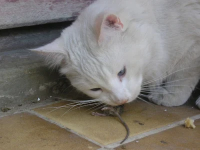 Pues hace mucho en Oruro, yo viví por un tiempo en una casa que tenía un jardín amplio, (eso es por llamarlo de algún modo), en dicho campo podrían caber fácilmente 5 o 6 canchas de basquet, y por supuesto el lugar era usado por la dueña de casa para sembrar una varieda de cosillas, lógicamente los roedores estaban felices ahí y de vez en cuando se trataban de colar a nuestros cuartos, pero mi minina llamada cariñosamente Imilla, siempre estaba al acecho de estos indeseables visitantes y tenía una manera escandalosa de despertarnos a la 12 o a las 1 o a las 2 o a la hora que fuese, para que viéramos el fruto de su vigilancia, una vez que la veíamos y felicitábamos, recién se lo comía al bicho y podíamos volver a dormir... Felicidades al Diamantín por sacar sus instintos a flote.